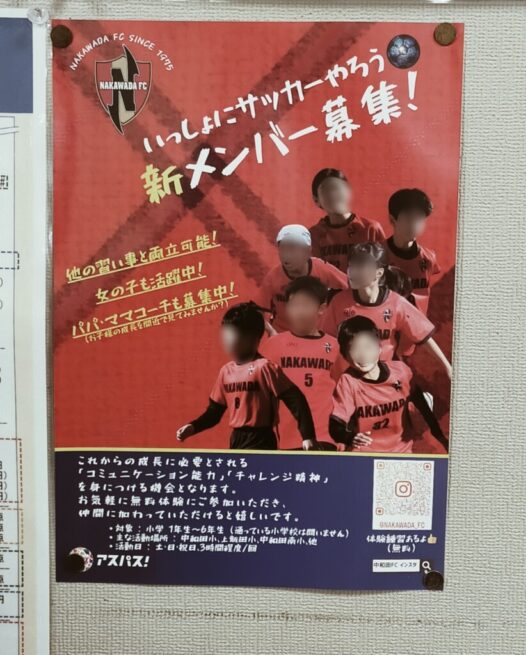 新年度になり、中和田FCのポスターも新しく掲示されています